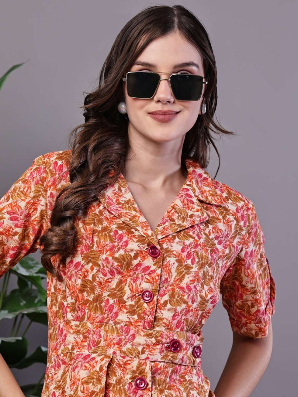 Effortlessly stylish dress with a vibrant abstract print, tie-up shoulder straps, and a chic high-low handkerchief hemline ? perfect for casual days or evening gatherings.